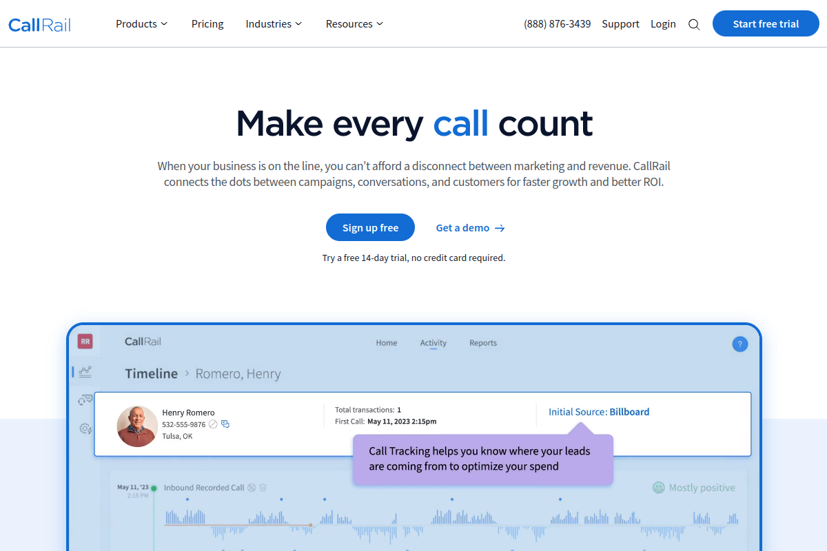 CallRail is a leading solution within the Marketing sector. A call tracking and marketing analytics platform that helps businesses understand which campaigns drive phone calls. It provides detailed attribution data to optimize marketing spend. With a robust feature set including Real-time Analytics, API Access, it empowers users to optimize their daily operations and maintain high-level productivity across all projects.