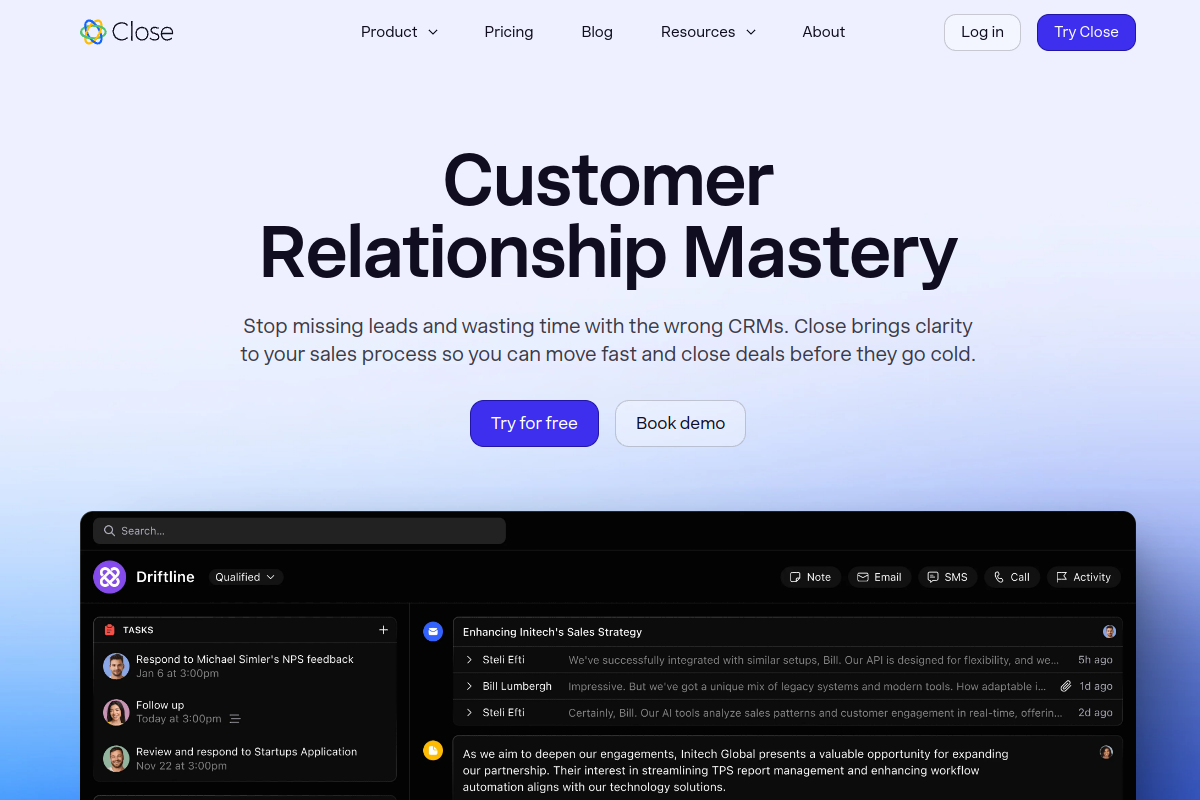 Close is a leading solution within the Marketing sector. A sales engagement CRM designed specifically for high-growth teams to close more deals. It integrates email, calling, and SMS into a single focused interface for sales reps. With a robust feature set including Workflow Automation, Real-time Analytics, API Access, it empowers users to optimize their daily operations and maintain high-level productivity across all projects.