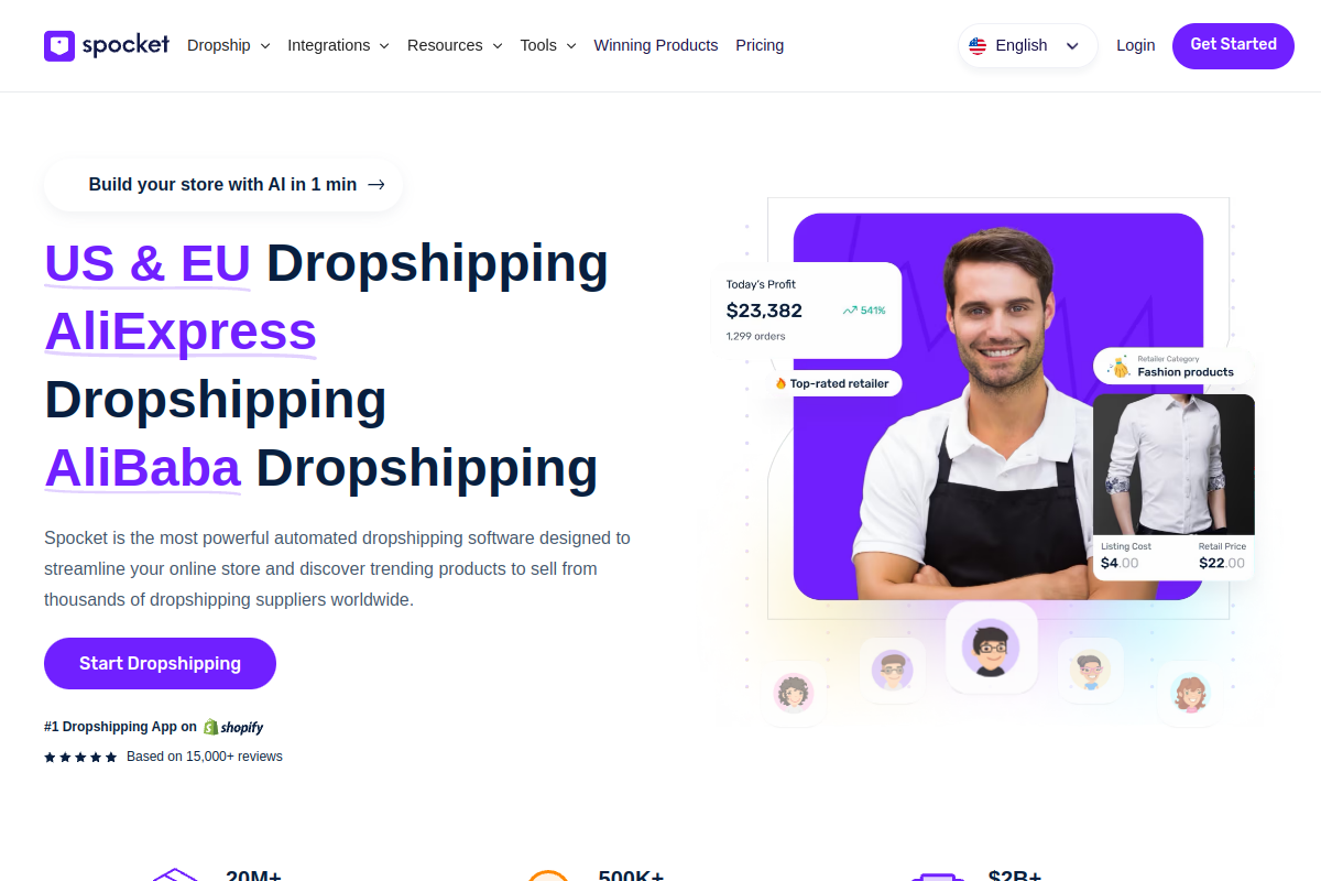 Spocket is a leading solution within the E-commerce sector. A dropshipping marketplace that connects online store owners with thousands of vetted US and EU suppliers for faster shipping and better products. With a robust feature set including API Access, Real-time Sync, it empowers users to optimize their daily operations and maintain high-level productivity across all projects.